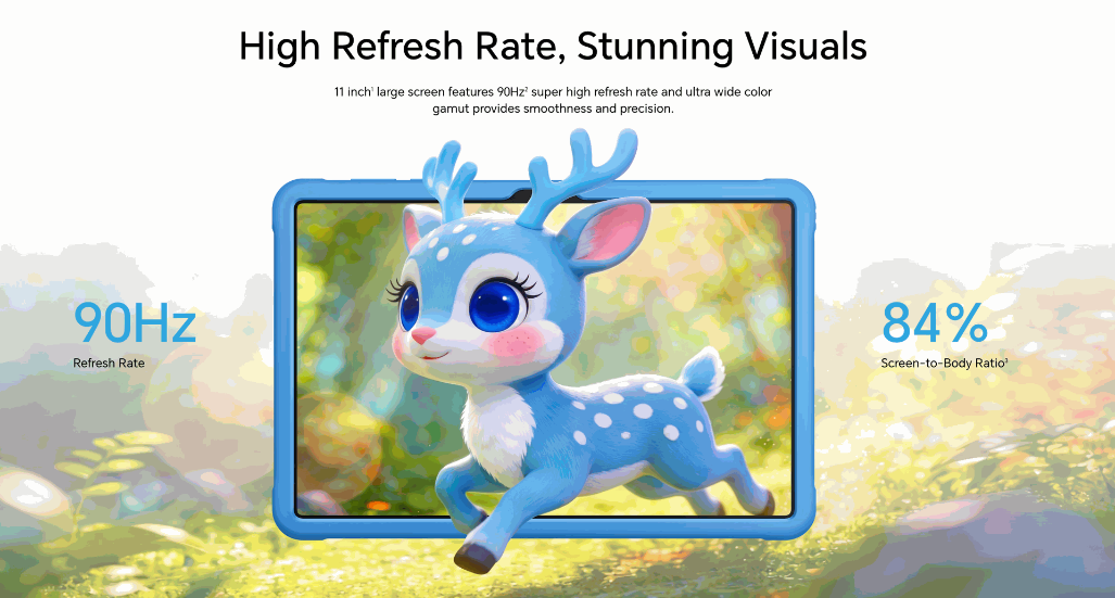| Display | Size 11 inches Note: The display has a rounded corner design, and when measured according to a standard rectangle, the diagonal length of the screen is 11 inches (the actual viewing area is slightly smaller). Screen-to-body Ratio 16:10 PPI 207PPI Brightness 500nits Contrast Ratio 1500:1 (typical value) Type TFT LCD (IPS) Resolution 1920*1200 Refresh Rate 90Hz (Support 2 gears, 90Hz/60Hz) Screen Color 16.7 million colors |
