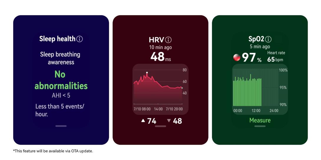 | Sensors | 9-axis IMU sensor (Accelerometer sensor, Gyroscope sensor, Magnetometer sensor) Optical heart rate sensor Ambient light sensor |