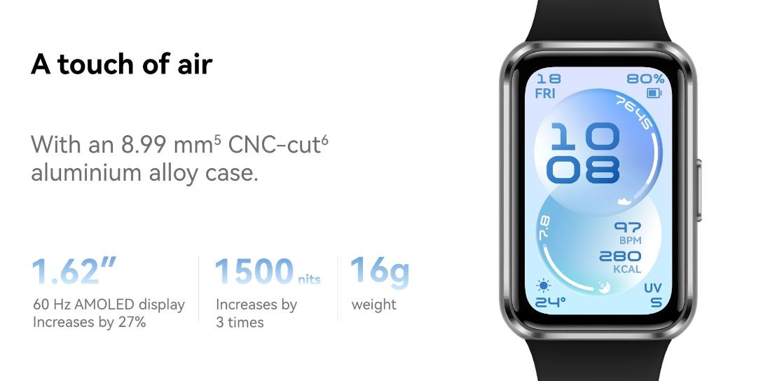 | Display | 1.62 inch AMOLED 286 × 482 pixels, PPI 347 *The AMOLED touchscreen supports swipe and touch gestures. |