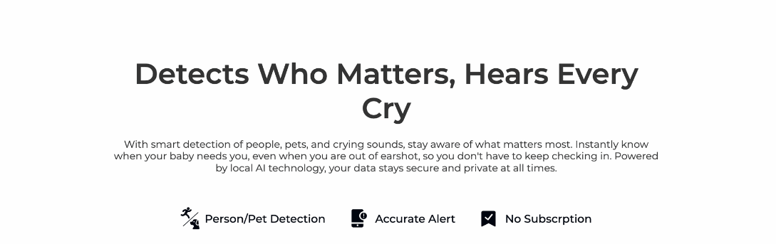 - Smart Alarm: Motion detection, person detection, vehicle detection